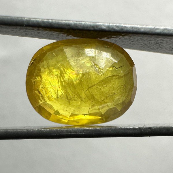 Some of the benefits associated with Yellow Sapphire include enhanced mental clarity, improved decision-making abilities, and better communication skills. It is also believed to promote good health, spiritual growth, and overall well-being.