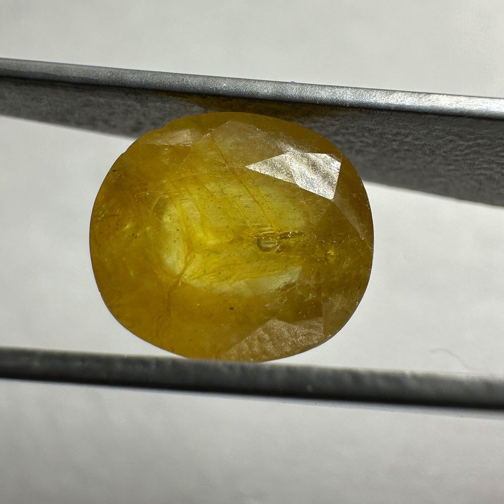 Some of the benefits associated with Yellow Sapphire include enhanced mental clarity, improved decision-making abilities, and better communication skills. It is also believed to promote good health, spiritual growth, and overall well-being.